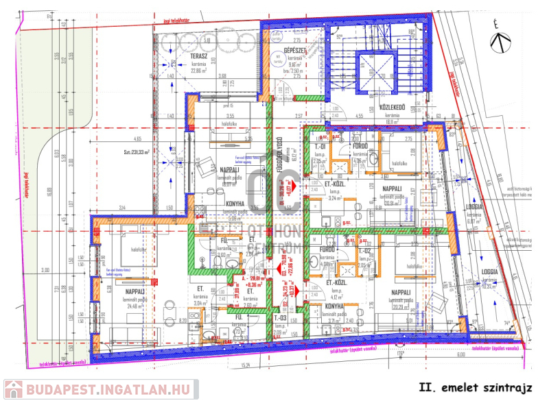 Az I. és II. emeletén 3 - 3 lakás, melyek garzon (nappali + hálófülke) és nappali + 2 hálós kialakításuak.