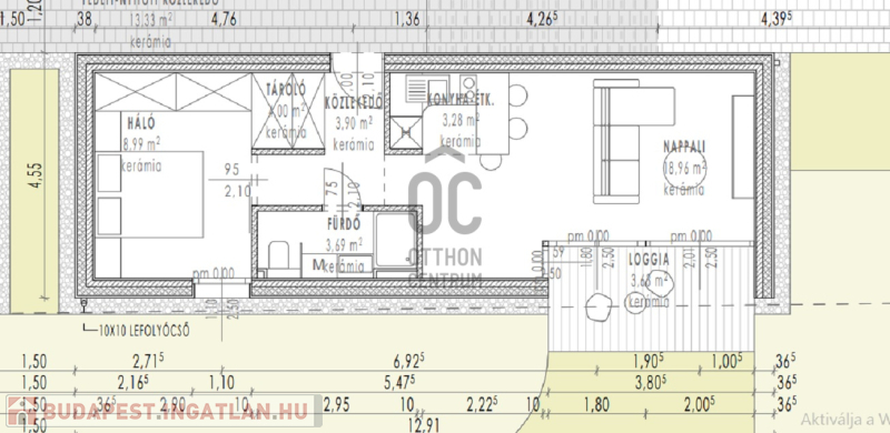 - 43 nm - Nappali- amerika konyha, hálószoba, fürdőszoba, tároló, 4 nm loggia,
