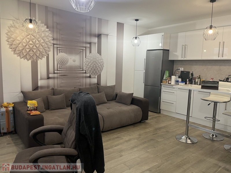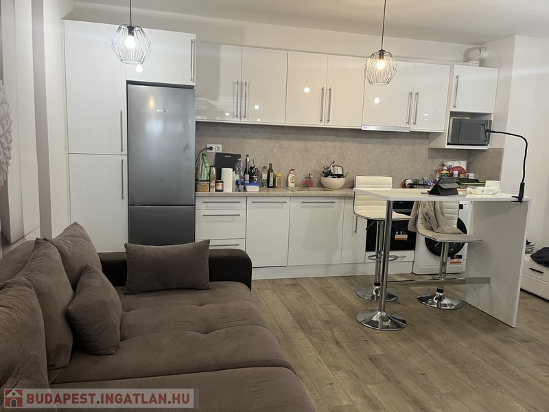 Modern és Praktikus Elrendezés: Az amerikai konyhás nappali tágas és világos teret biztosít a mindennapi élethez és a vendégfogadáshoz. Az egy külön szoba pedig nyugodt pihenést garantál.