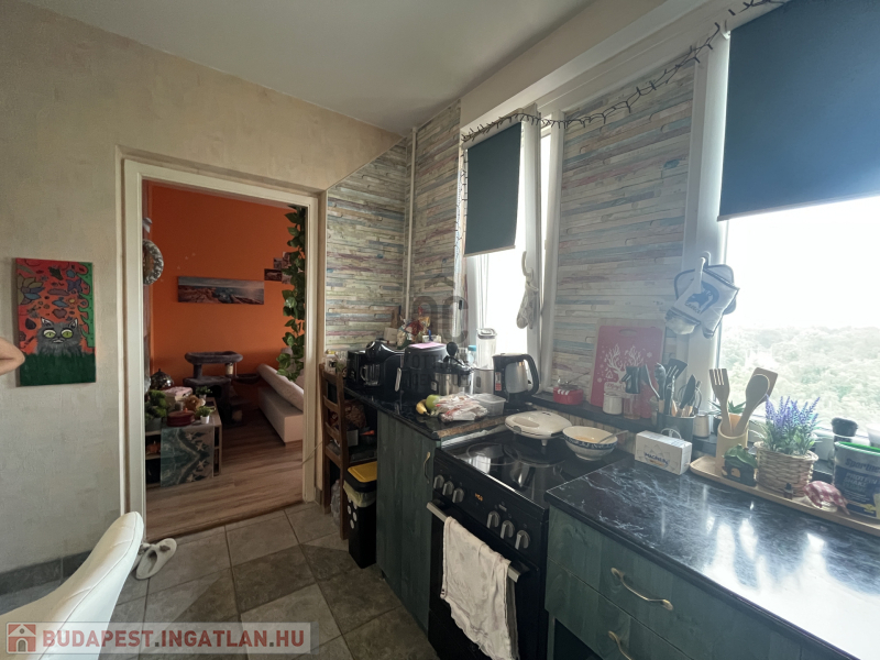A lakás a Károlyi Mihály utcán, egy panelprogramos, rendezett társasházban található, műanyag nyílászárókkal és mért távfűtéssel. A 7. emeleti otthon klímás, külön fürdőszobával és wc-vel rendelkezik, az erkély pedig pihenésre vagy reggeli kávézáshoz is ideális.