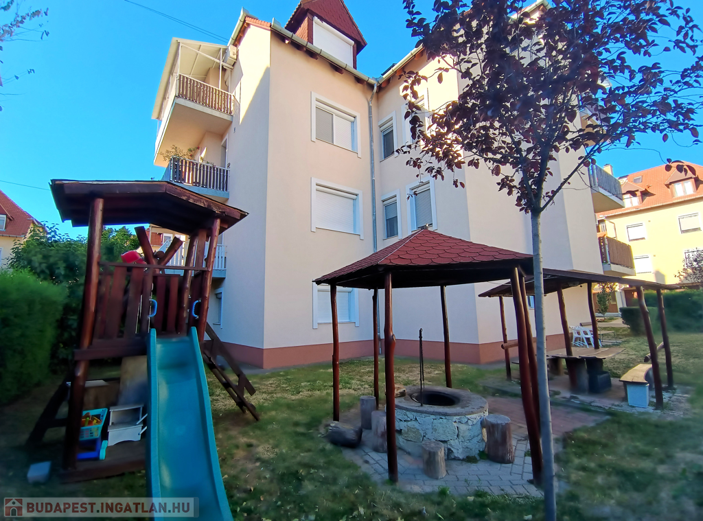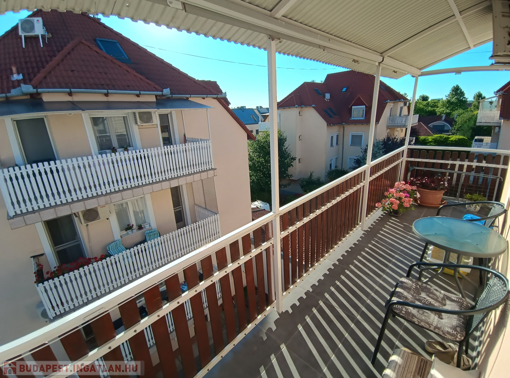 A négyszintes, háromemeletes téglaépítésű társasház 1999 szeptemberében került átadásra. Az ingatlan a harmadik emeleten található, belső kétszintes, duplakomfortos és egy szép nagy nyugati fekvésű bő 10m²-es erkéllyel rendelkezik. Gyerekekkel, barátokkal kültéri kikapcsolódásra kiválóan alkalmas udvarán filagória, csúszda, hinta, főzőhely kapott helyett. A hozzátartozó 12m²-es garázs az ingatlan alatt helyezkedik el, ára 10 millió Forint, megvétele opcionális.