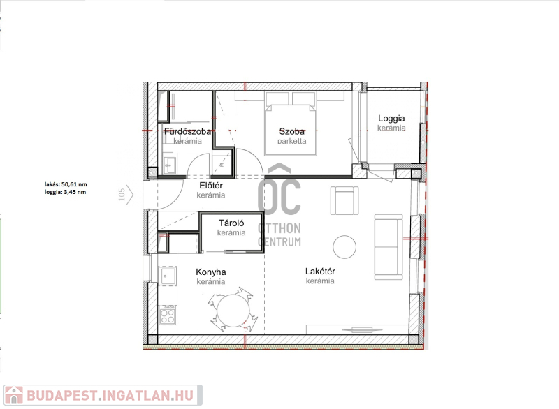Ez az 2. emeleti lakás 49,47 nm-es, nappali-étkező-konyha +1 szobás, 6,03 nm-es loggiával. Nappali+ 2 szobássá alakítható.