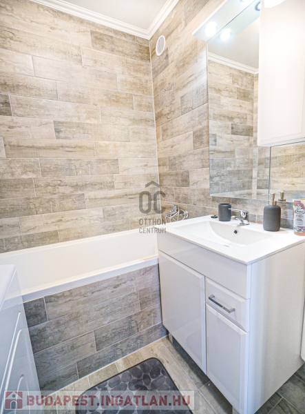 A kialakításban és burkolataiban megújult fürdőszoba és a WC külön helyiségben,