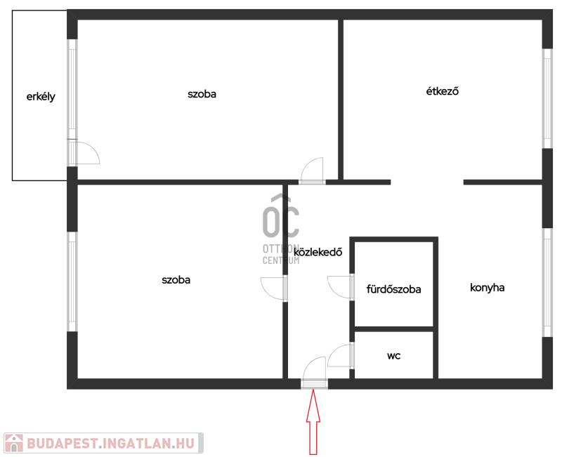 Konyha + étkező, 2 szoba, fürdőszoba, WC, előszoba elosztású