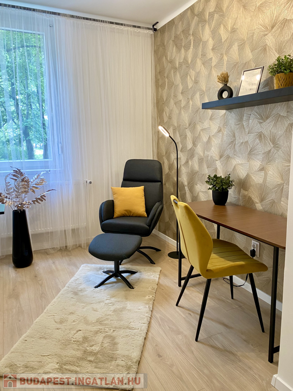Nagy Lajos király tér mellett, egy jelenleg energetikai felújítás alatt álló 4 emeletes háztömb földszintjén.