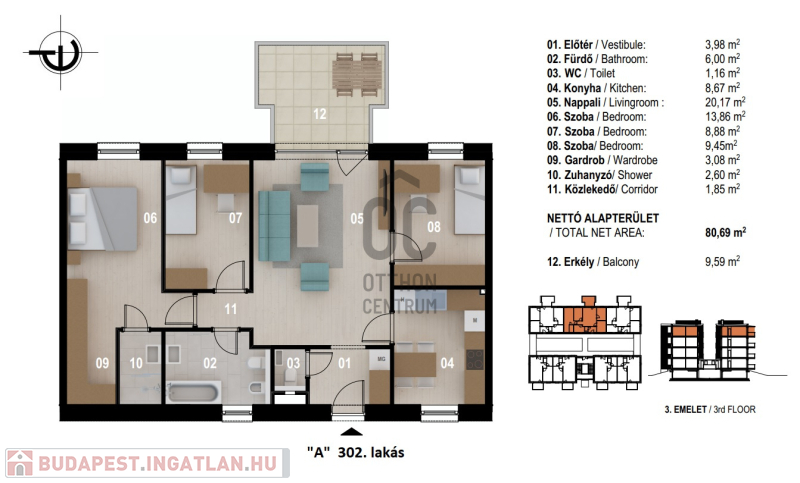 "A" III. emelet 302. lakás: 89.555.714.- + ÁFA