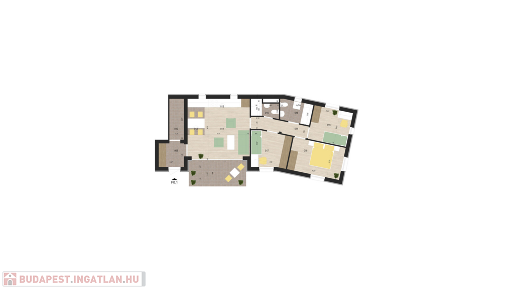 -Elrendezés: 3 szoba + amerikai konyhás nappali, külön fürdőszoba és külön WC.