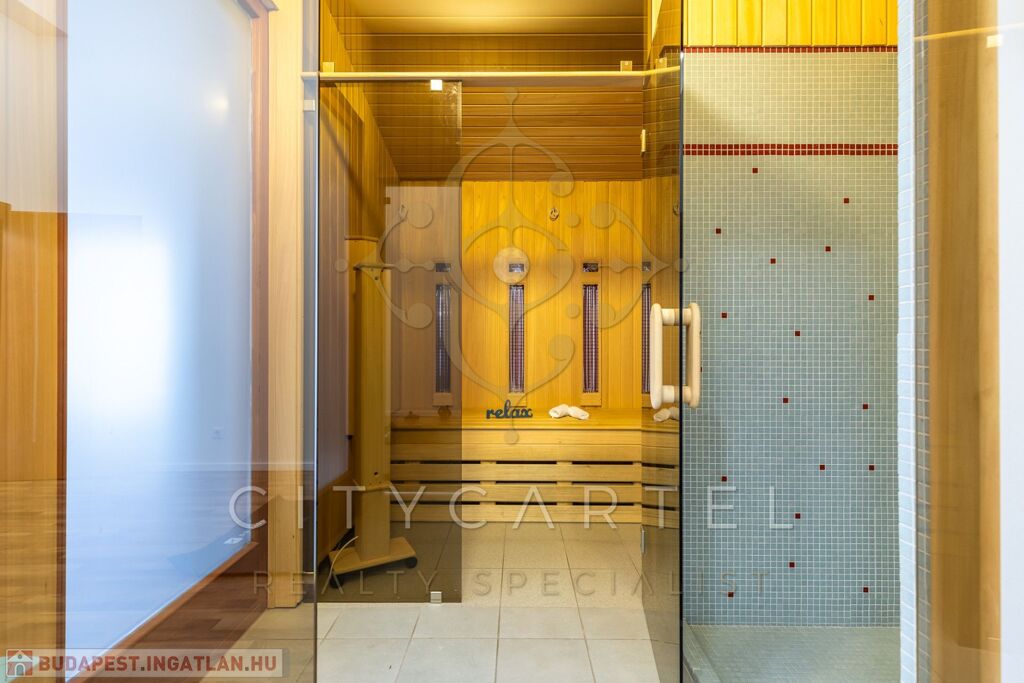 A lakáshoz tartozó 305 nm-es privát parkosított kert közvetlen kapcsolatot biztosít a két tágas teraszhoz és a saját wellness-részleghez, így a nyugalom és a kikapcsolódás garantált.