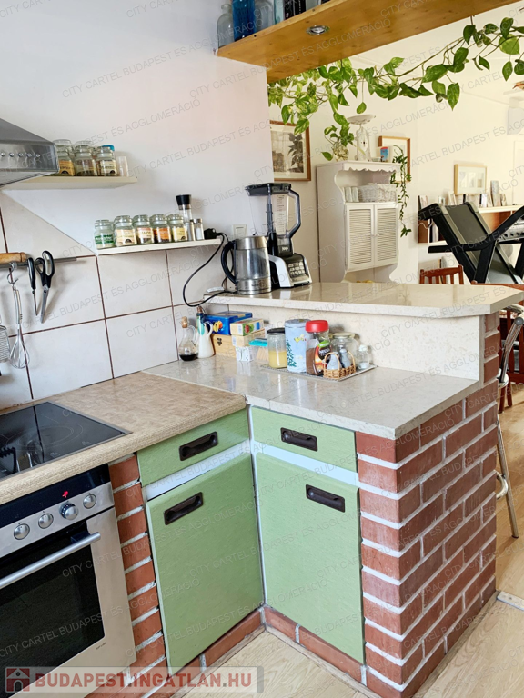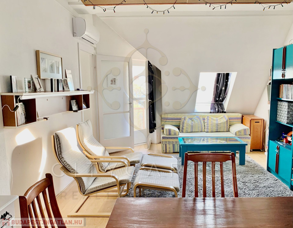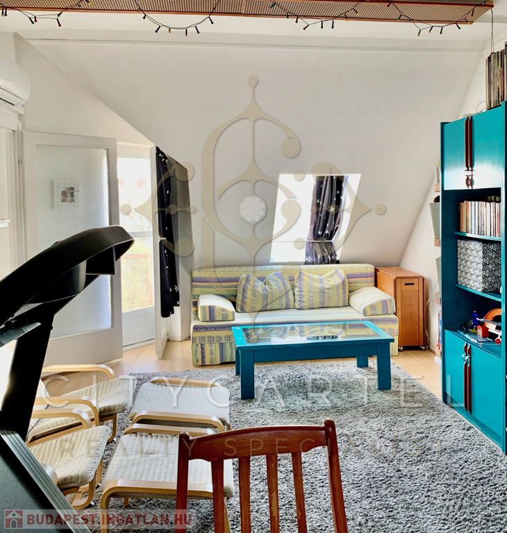 Átlagos állapotú, 2+1 szobás manzárd lakást kínálunk eladásra a kellemes hangulatú Duna-parti kisváros centrumában. Az iskola, óvoda, bankok, buszpályaudvar közvetlen közelében álló, téglaépítésű ház az 1980-as évek elején épült, fákkal, bokrokkal, buja növényzettel betelepített udvara kulturált parkolónak ad helyet. A kifogástalan statikai állapotban lévő épület tetőterében kialakított, átlagos állapotú lakás vastag, száraz falai 100 nm hasznos alapterületű lakóteret zárnak közre, amelyen tágas étkező-nappalihoz két nagyobb és egy kisebb méretű, világos hálószoba, konyha, előszoba, fürdőszoba és WC kapcsolódik. A déli fekvésű, gondozott parkra néző loggia kiváló lehetőséget kínál az itt élők számára a gondtalan pihenésre. A ház fűtéséről központi gázkazánnal üzemeltetett fűtésrendszer gondoskodik.