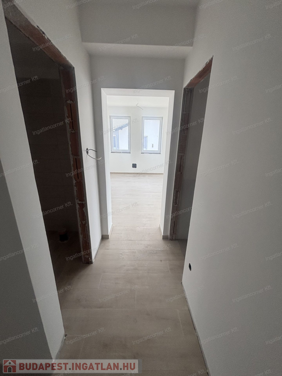 3, lakás nettó 60,77 m2 + 9,29 m2 terasz, nappali + 2 háló, 119 m2 telek, fan-coil klíma (a hálószobákban kiállás előkészítés), riasztó, kaputelefon, 2db parkoló