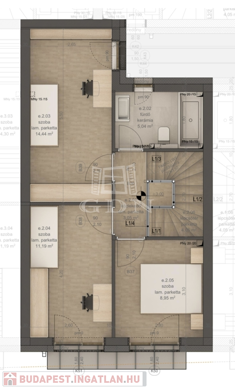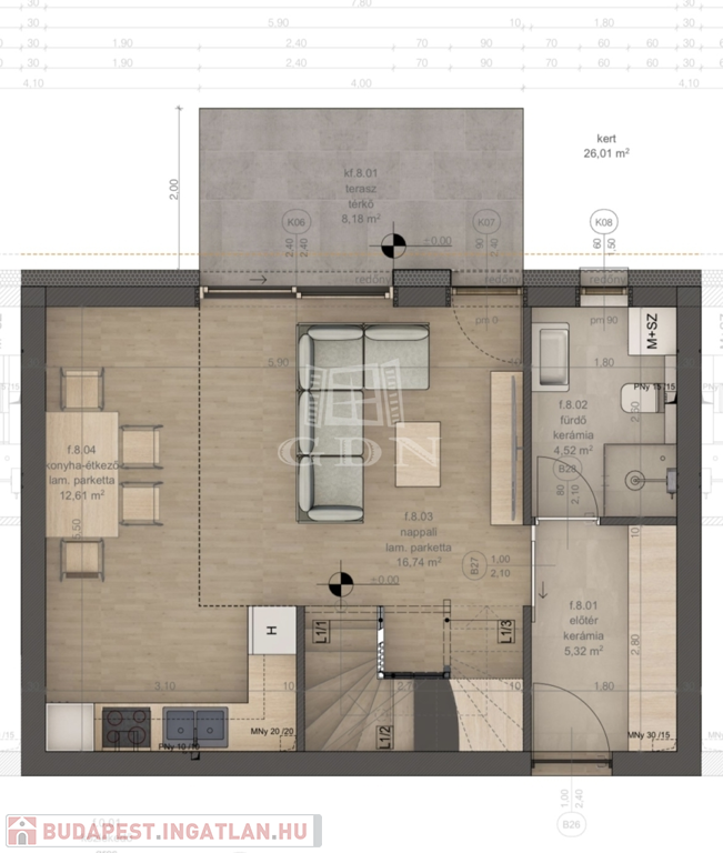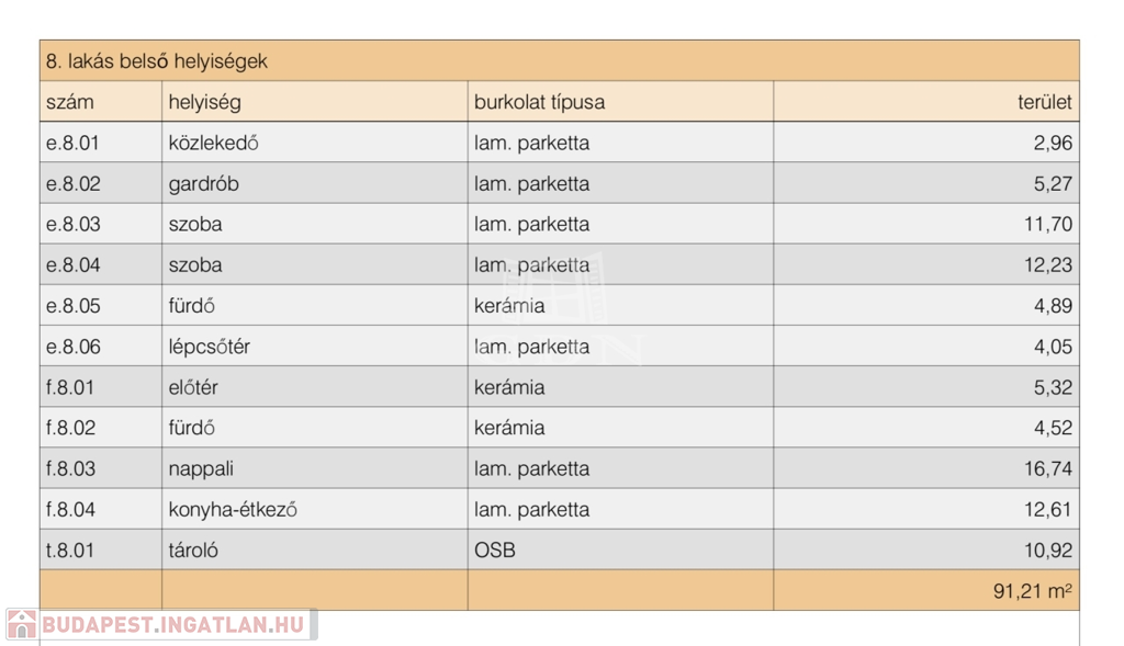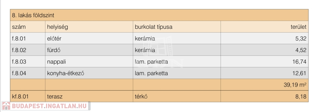8. lakás: 91 nm + 8 nm terasz + 26 nm kert = 96.000.000 Ft