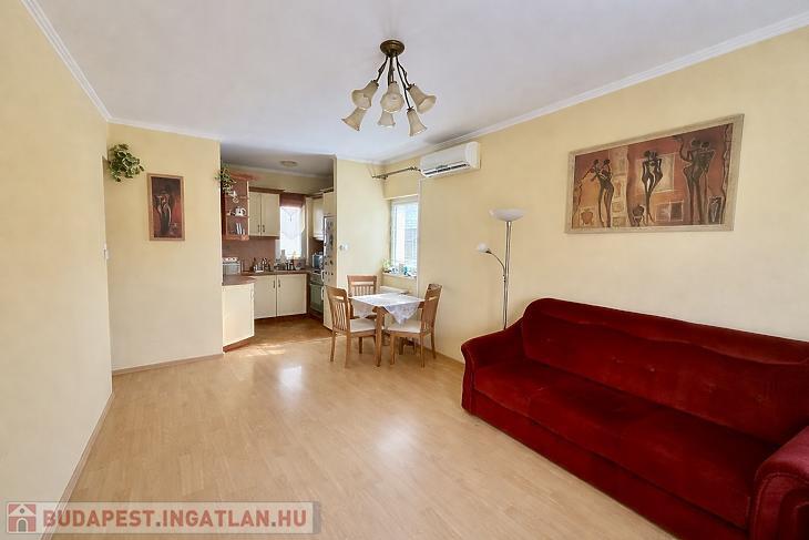 Elosztása praktikus: amerikai konyhás nappalival, 1 külön nyíló hálószobával, valamint fürdőszobával és WC-vel került kialakításra. A fűtést turbó kombi cirkó biztosítja, a nyári nagy melegben pedig egy hűtő–fűtő klíma gondoskodik a kellemes komfortérzetről.