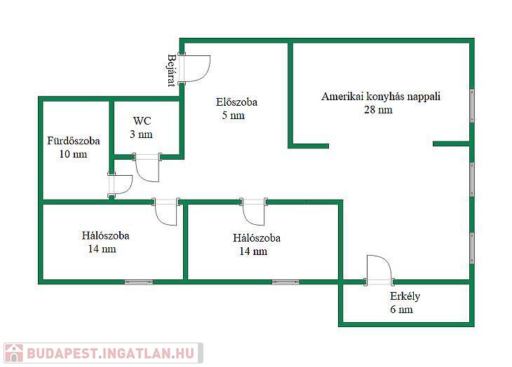 Az elrendezés ideális: Amerikai konyhás nappali + 2 hálószoba, fürdőszoba és külön nyíló WC, és egy előszoba biztosít kényelmes életteret. A nappaliból egy 6 nm-es erkélyre léphetünk ki – tökéletes helyszín egy reggeli kávéhoz vagy esti kikapcsolódáshoz.