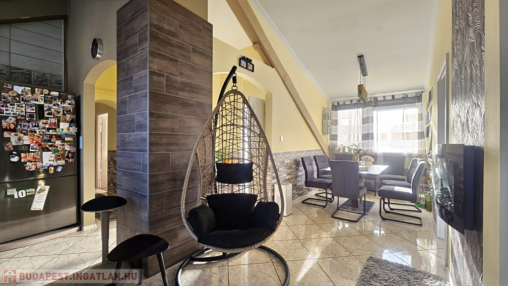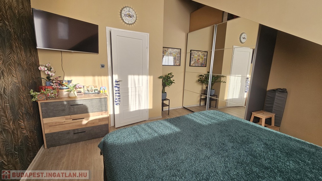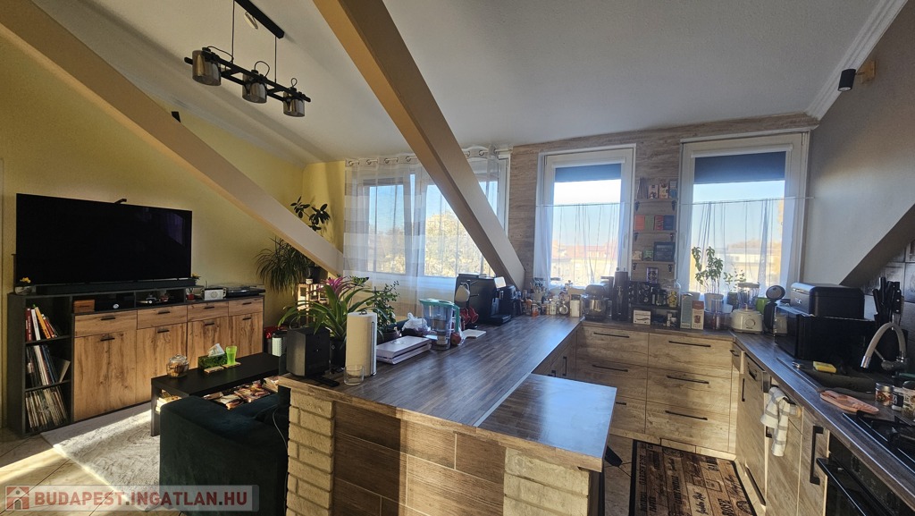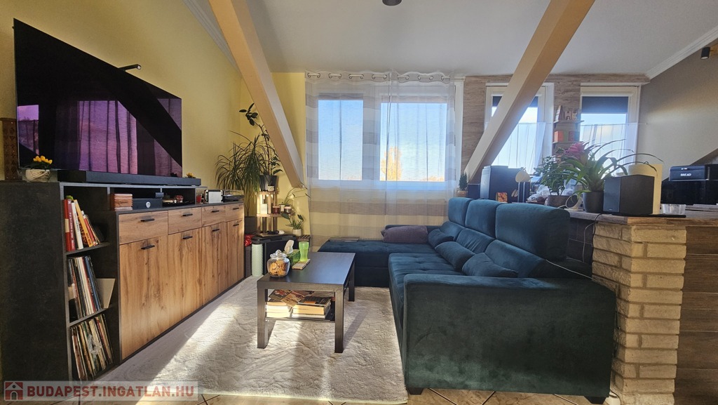 Eladó egy 107 m²-es, 4. emeleti tetőtéri lakás, amely kiváló elosztásának és modern felszereltségének köszönhetően ideális családoknak vagy befektetésnek is.