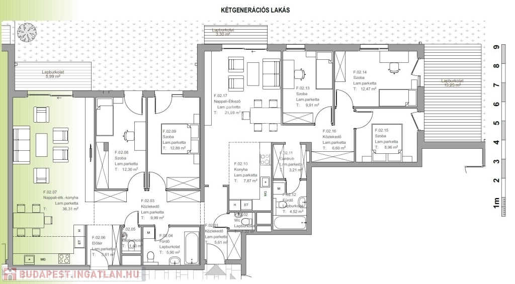 -II.09 lakás 90,1 m2; terasz: 87,86 + 22,17 m2 ár: ELKELT!