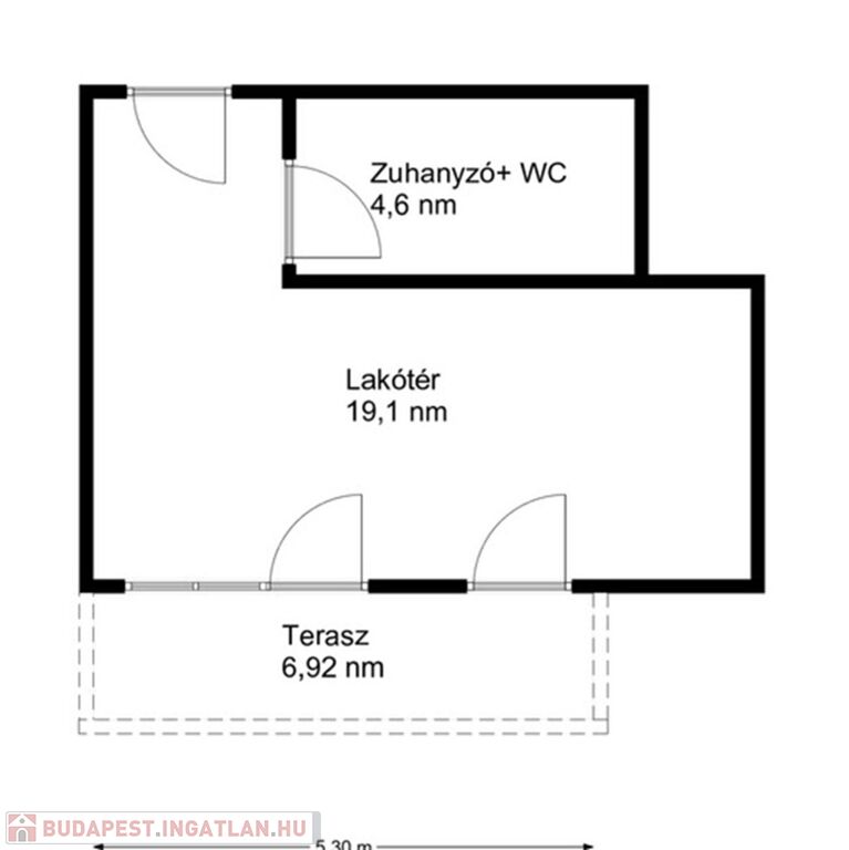 Ez a lakás a társasház második emeletén található (A74), 27 nm hasznos alapterülettel rendelkezik. Az ingatlan helyiségei: lakószoba, zuhanyzó, wc, terasz.