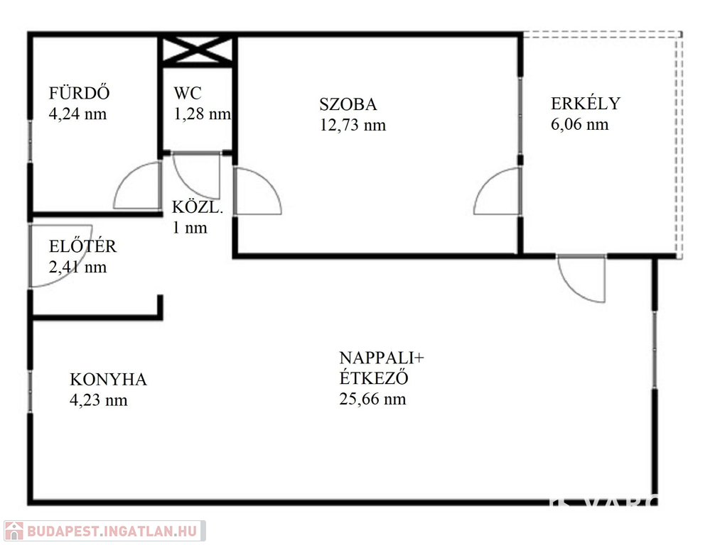 Ez a lakás a társasház első emeletén található (C36), 51 nm hasznos alapterülettel rendelkezik. A lakótér helyiségei: nappali, konyha étkezővel, 1 szoba, fürdőszoba, közlekedő, wc, erkély.