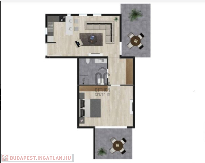 A 58,18 m2-en a lakás magában foglal egy kellemes előszoba-konyha-étkezőt, egy tágas nappalit, egy fürdőszobát, egy szép hálószobát, egy mellékhelyiséget, egy gardróbot és két méretes, RÉSZBEN fedett teraszt, mely gyönyörű zöldövezeti területre néz.