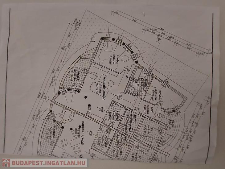 A hálószobák laminált parkettásak, a többi helyiség járólappal burkolt, a nyílászárók pedig műanyag termo üvegesek.