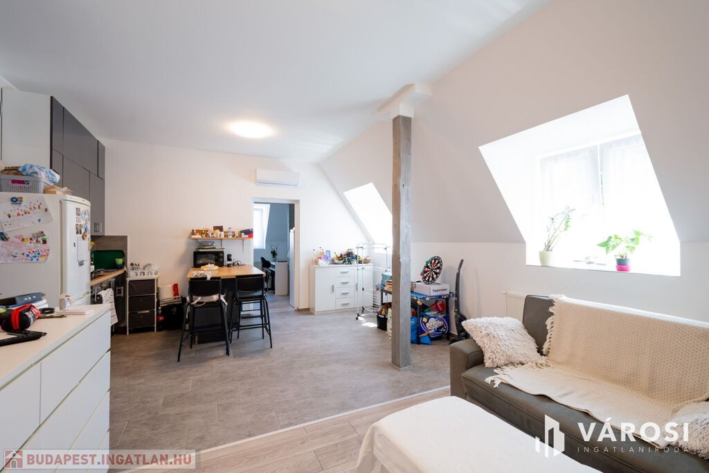 A lakást egy tetőtérbeépítés során 2024-25 között alakították ki, így minden újszerű benne. Új burkolatokat, új nyílászárókat kapott, új az elektromos és víz, gáz hálózat, valamint új kondenzációs gázkazánt építettek be.