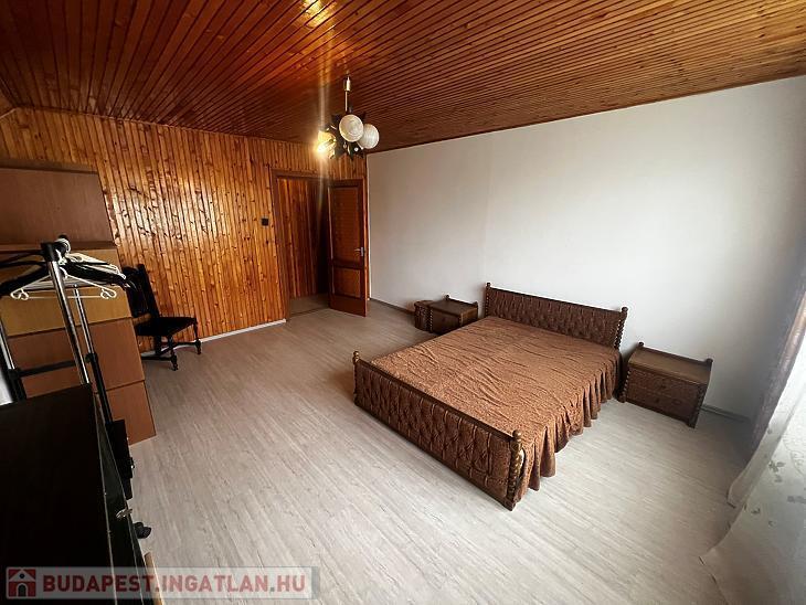 Emelet: 2 szoba, étkező, konyha, kamra, kádas fürdőszoba + mellékhelyiség, erkély.