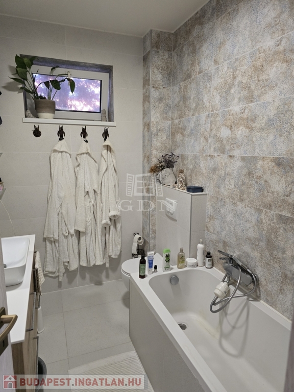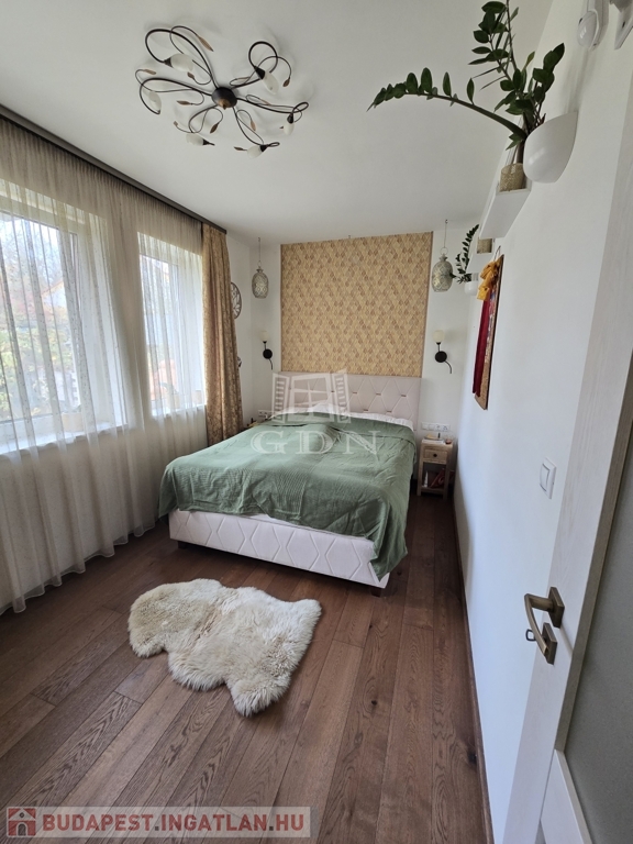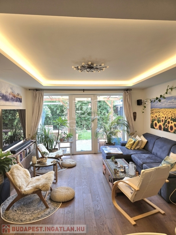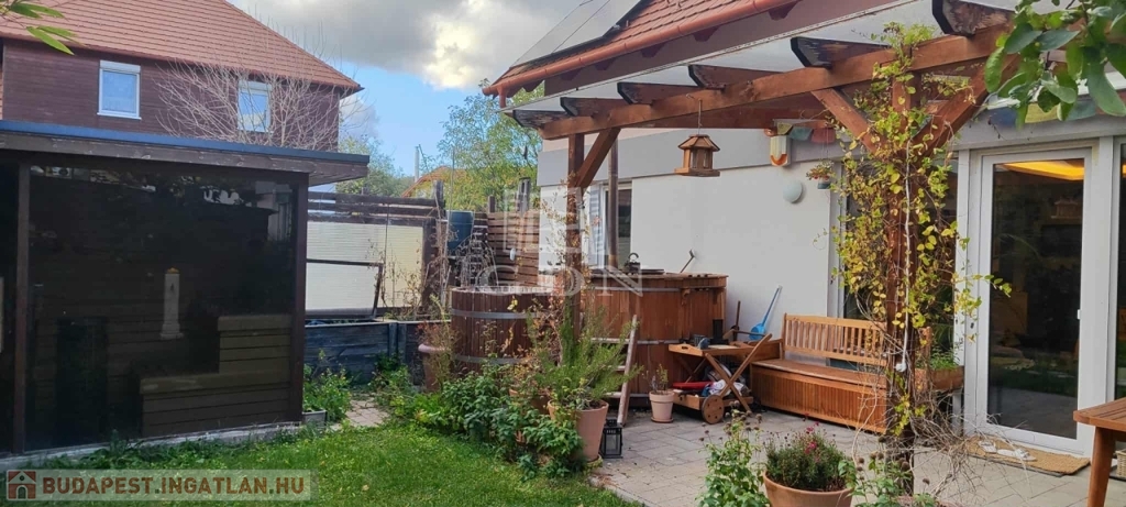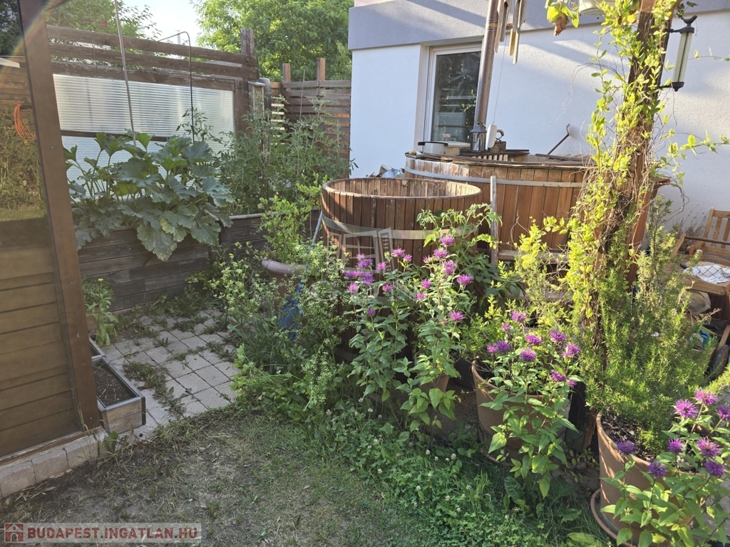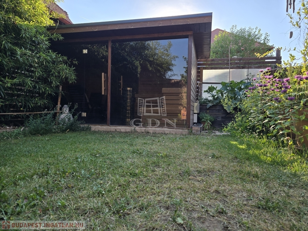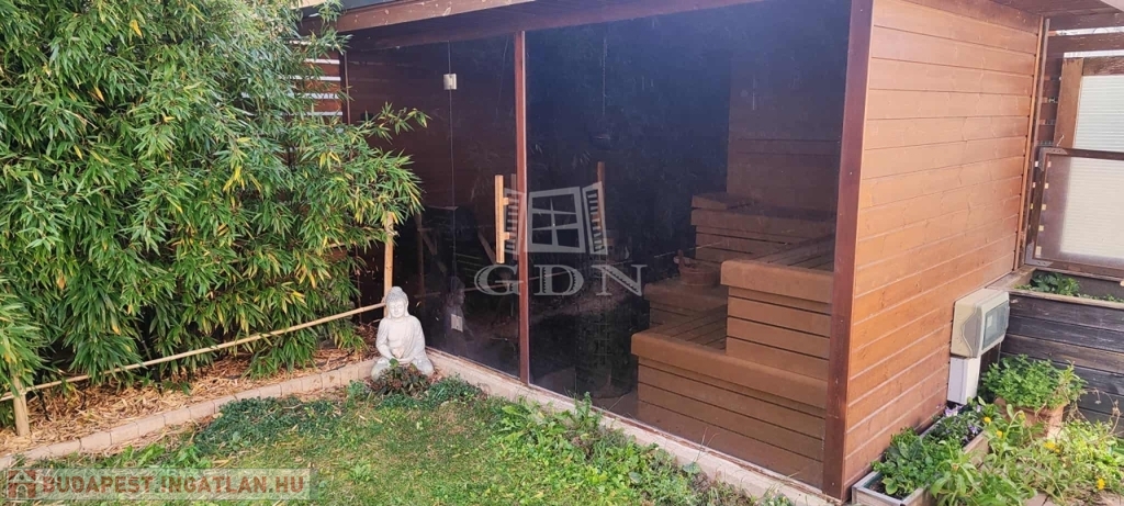 A lakás kiváló elosztással rendelkezik, meleg, déli tájolású nagy ablakokkal, fedett terasszal. Az öntözőrendszerrel kialakított kertben fatüzelésű erdélyi fürdődézsával és egy prémium kivitelezésű 6 személyes finn szaunával, a nyári madárcsicsergés mellett még a téli hétköznap esték is meghitt nyugalomban és teljes feltölődésben telnek.