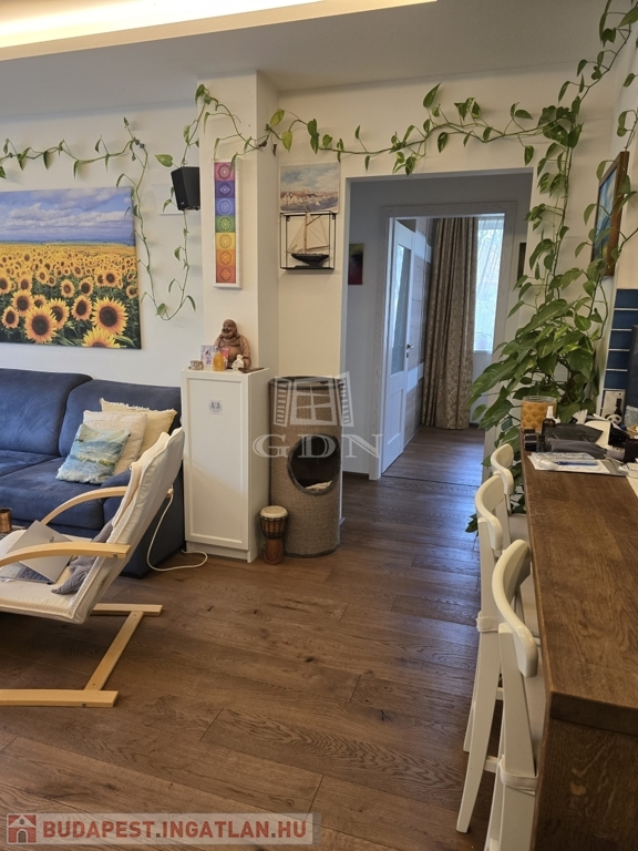A szobákban, a konyhában és a nappaliban eredeti svéd tölgyfa padló, az előtérben és a fürdőben gyönyörű kerámia burkolatú a padozat. Az amerikai konyhás nappaliban fa konyhabútorok egyedi tervezésűek, tömör tölgyfa munkalappal, beépített elektromos elektromos sütővel, gáz főzőlappal, elektromos páraelszívóval, és mosogatógéppel valamint elektromos szelektív kukával.