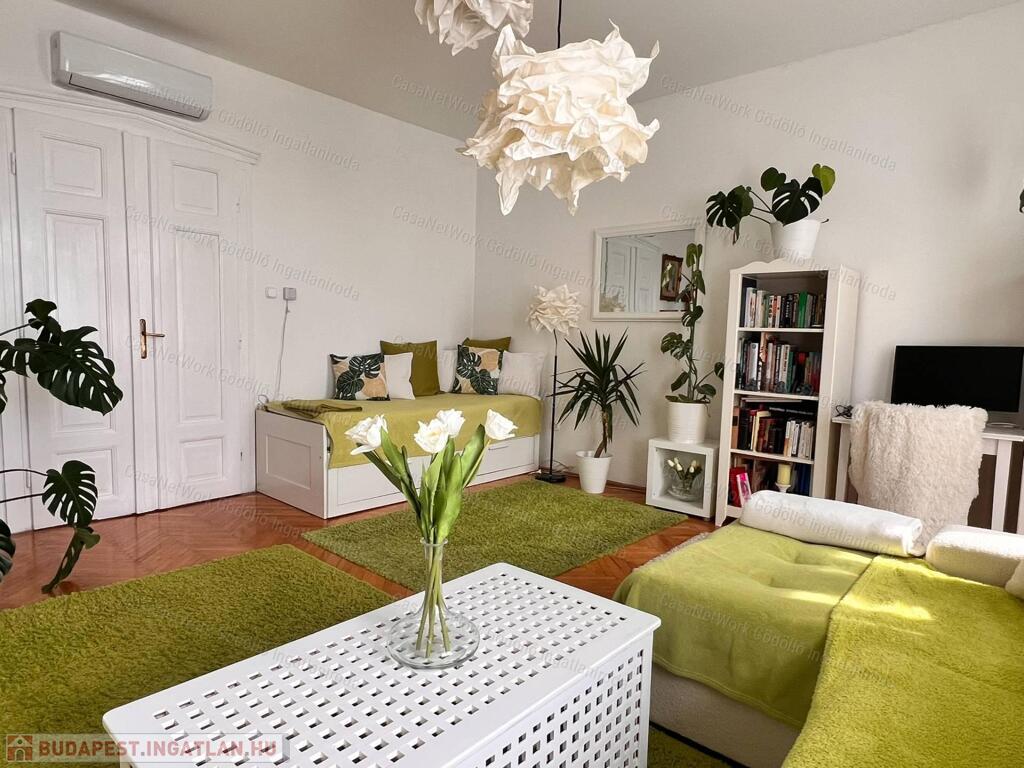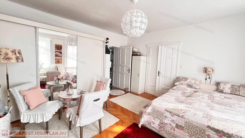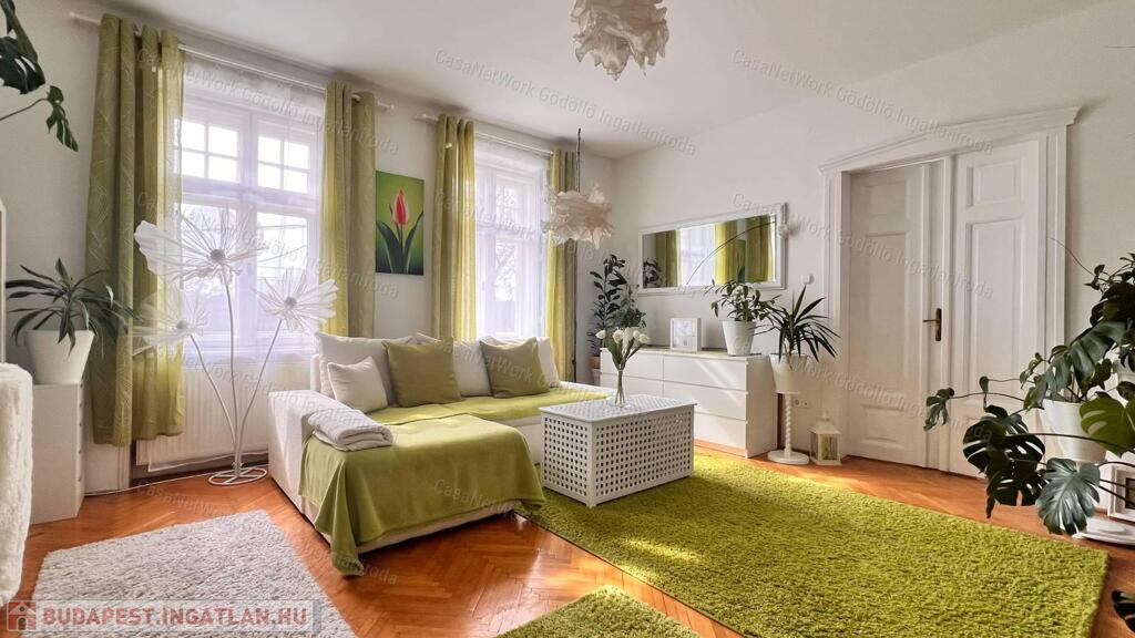 Az épület történelmet ír, a lakás megőrizte polgári jellegét nagy belmagasságával, gyönyörű eredeti fa ajtókkal, ugyanakkor harmonikus, de modern lakberendezéssel, és felújított műszaki megoldásokkal. Két tágas szobája külön bejáratú, de átjárható egyben. A lakás a hozzá tartozó lépcsőházból közelíthető meg. A padlástér jól használható tárolásra.
