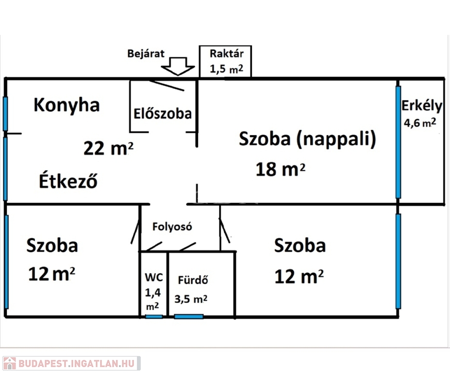 3 külön bejáratú szoba, laminált parkettával burkolva