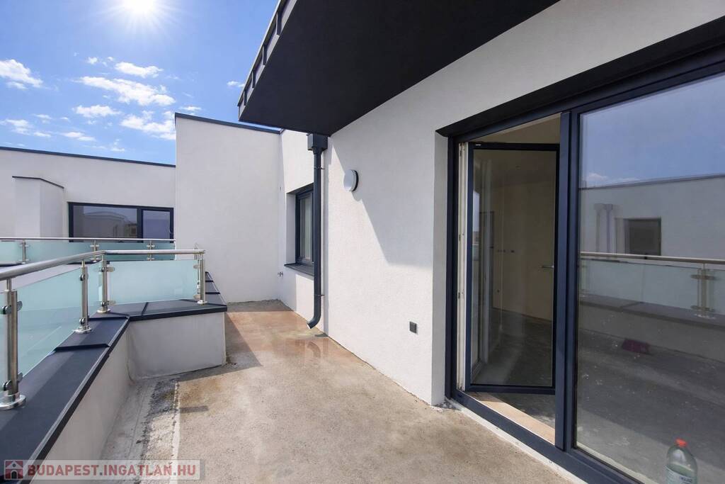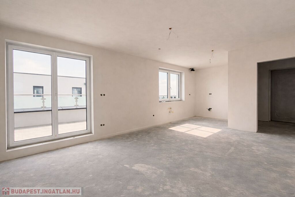 A közel 46 m²-es nappali–konyha–étkező tér természetes fénnyel telik meg egész nap, míg a 34,33 m²-es tetőterasz privát oázisként szolgál – reggeli kávéhoz, esti borozáshoz, vendégfogadáshoz.