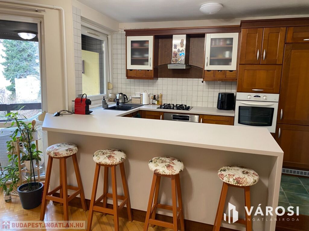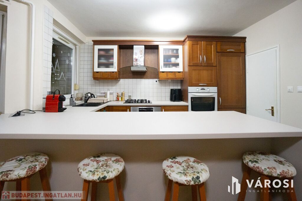 A konyha gépesített: beépített gázfőzőlap, elektromos tűzhely, szagelszívó, mosogatógép található benne.