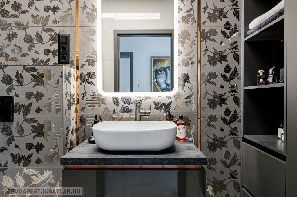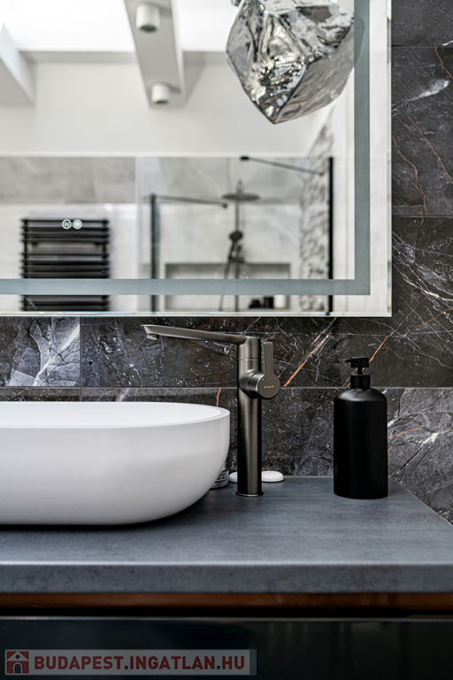 A fürdőszobákban prémium minőségű burkolatokat, Deante titánium, modern csaptelepeket, egyedi gyártású mosdószekrényeket, led prémium line érintőkapcsolós tükröt találunk.