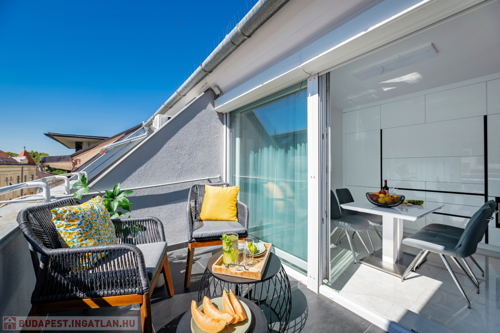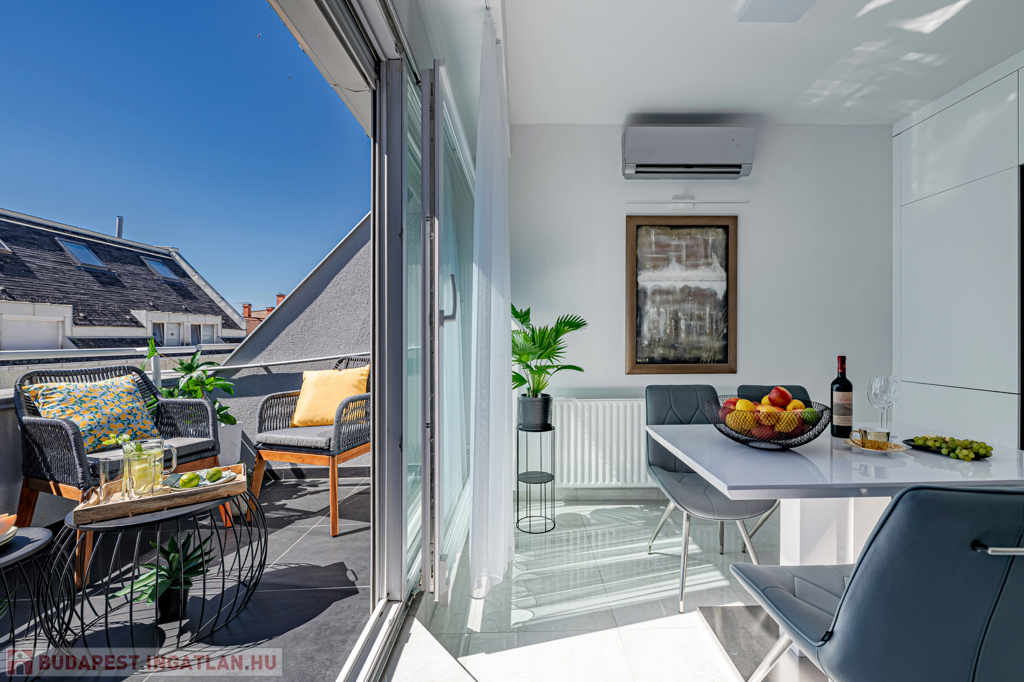 Belvárosban, liftes társasház felső szintjén, modern, minőségi otthon várja Tulajdonosát.