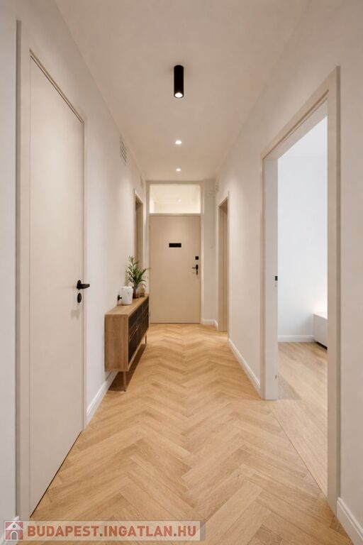 A lakás radiátoros fűtéssel ellátott, az ablakok redőnnyel felszereltek.