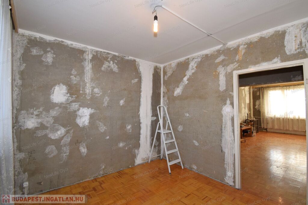 A belső felújítási munkálatok elkezdődtek, a régi tapétát eltávolították, a burkolatok a függőleges felületekről illetve a konyhabútor is elszállításra került. A fürdőszobai kádat is kimozdították, a mosdókagyló már nincs bent.
