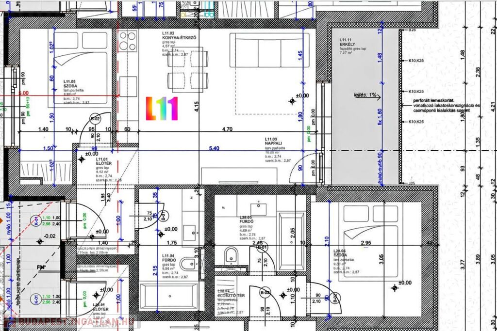 A földszinti 39,95 m2-es L11 LAKÁS HELYISÉGEI: