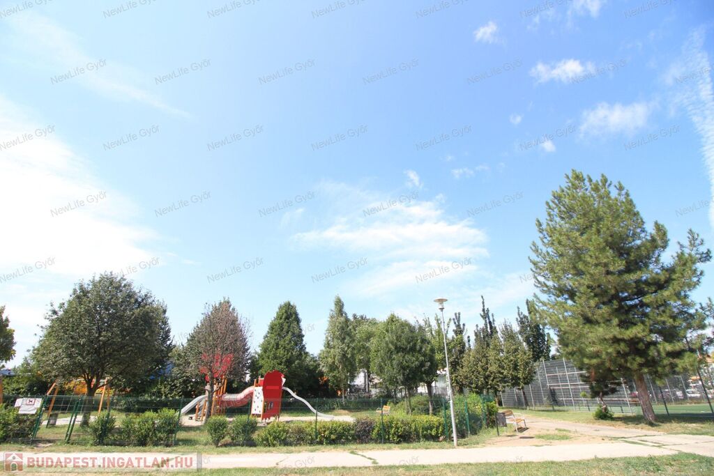 A lakás frekventált, mégis csendes helyen van, alacsony forgalmú utcában, ahonnan gyalogosan is mindent kényelmesen meg lehet közelíteni, autóval 1-2 perc alatt szinte mindent. Közel van az Árkád, ETO Park, Aldi, Lidl, Interspar, OBI, kisebb boltok, benzinkút, dohánybolt stb. Gyerekek számára bölcsőde, óvoda, iskola, gyermekorvos, valamint park és játszótér. A ház környékén a közterületen ingyenes a parkolás és mindig van szabadhely.