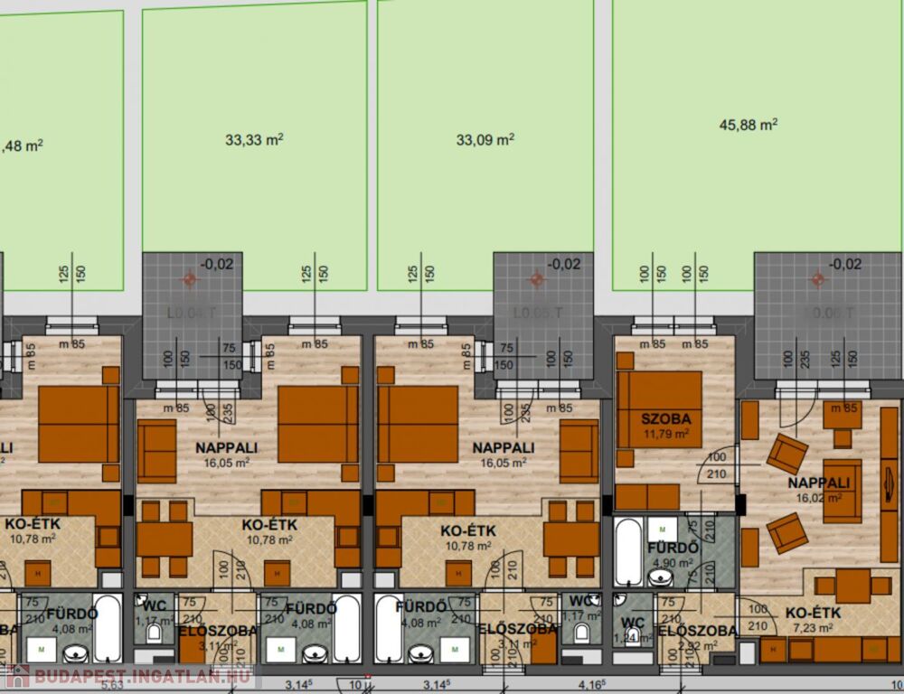 - 38 m² privát használatú, parkosított, füvesített KERT