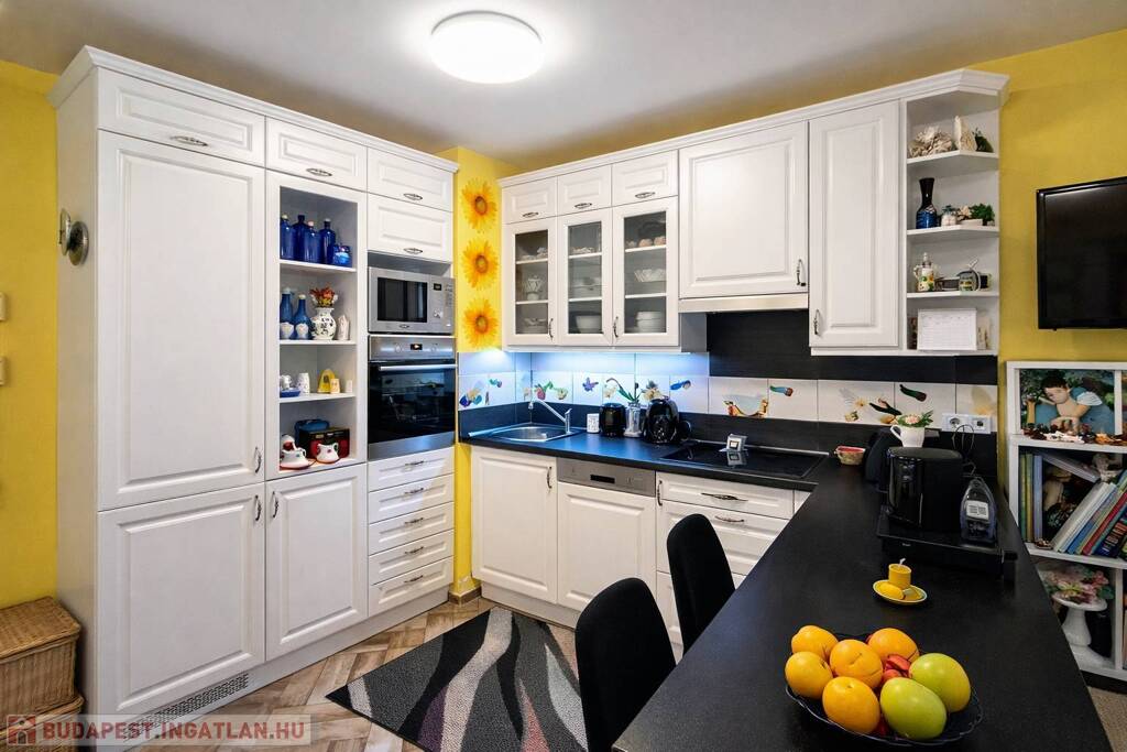 - Beépített konyhabútor kitűnő minőségű, beépített háztartási gépekkel ( mosogatógép, légkeveréses villanysütő, kerámialapos főzőlap, páraelszívó)
