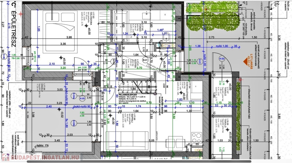 Az első emeleti, belső kétszintes 49,62 m2-es L17 LAKÁS HELYISÉGEI: