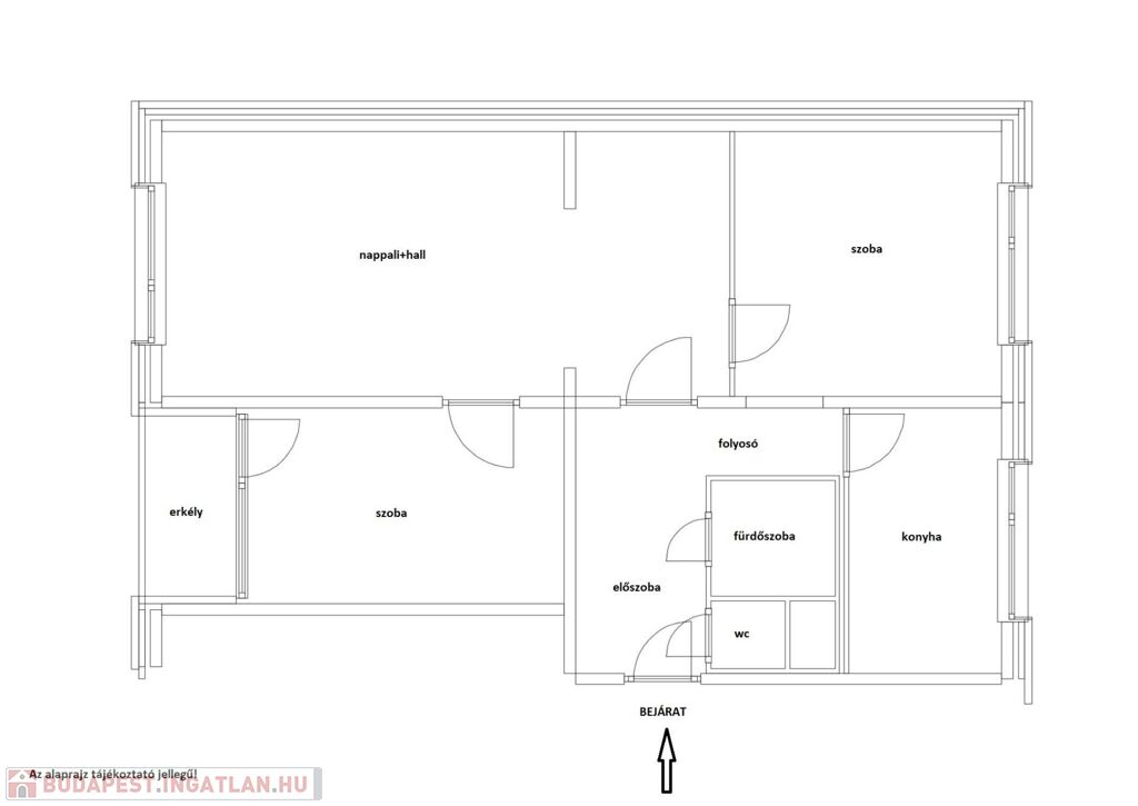 Elosztása szerint: 1 nappali-étkező/hall, 2 szoba, konyha, fürdőszoba, wc, folyosó helyiségekből áll.