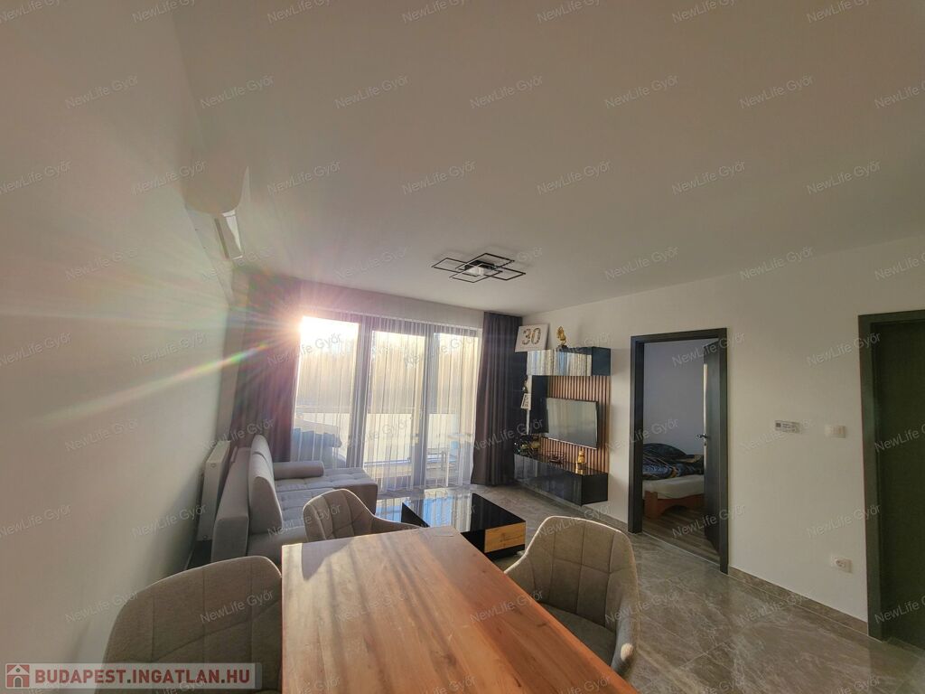 Eladó teljesen felújított, bútorozott 1. emeleti téglalakás saját parkolóval Győr-Ménfőcsanakon – azonnal költözhető!