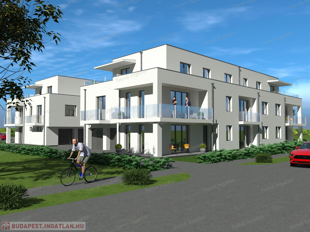 A tárasház 30 cm-es falazóelemből, 20 cm-es homlokzati szigeteléssel épül. A műanyag, hang-és hőszigetelt, Internorm nyílászárók kívül antracit színűek. Az ár tartalmazza az alumínium elektromos redőny előkészítését és a redőny dobok beépítését. Az ingatlan hűtése/fűtése hőszivattyúval történik, egyedi hőmennyiségmérővel és hőmérséklet szabályozó termosztáttal, így nincs szükség klímára. Melegvíz előállítás is hőszivattyúval megoldott. A társasház udvaran térkövezett gépkocsibeállók kerülnek kialakításra.