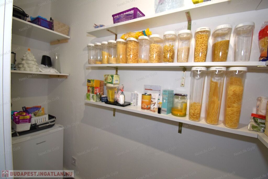 Elosztása: tágas nappali étkezővel, nagyméretű hálószoba, konyha, kamra, külön WC, kádas fürdőszoba, közlekedő.