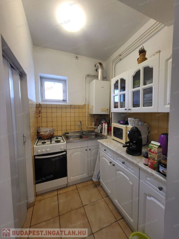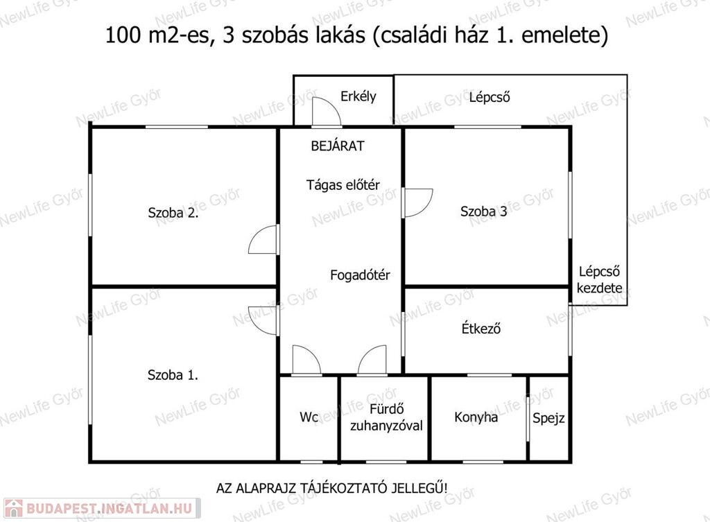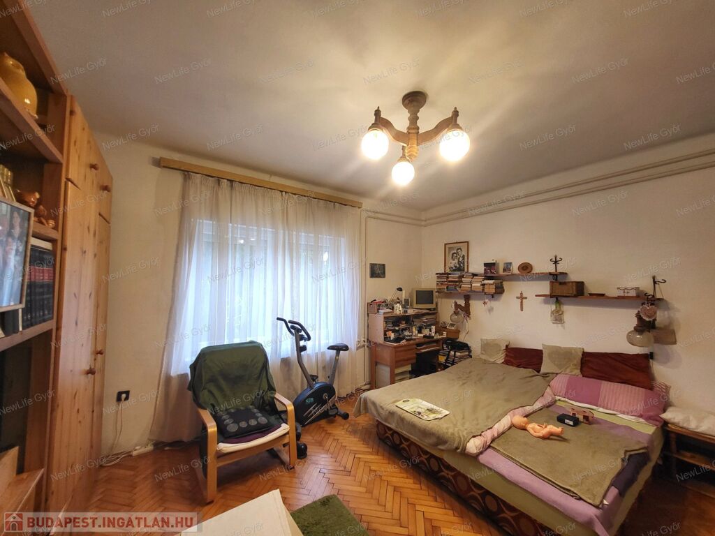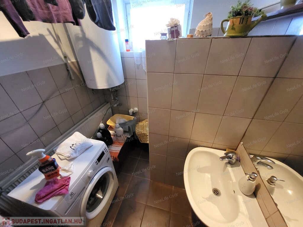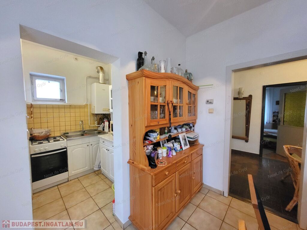 Győr–Ménfőcsanakon, frekventált, mégis nyugodt kertvárosi környezetben eladó egy kétlakásos társasház első emeleti, külön bejáratú lakása, amely valójában egy családi ház teljes felső szintjét jelenti, saját használatú kerttel és melléképületekkel.