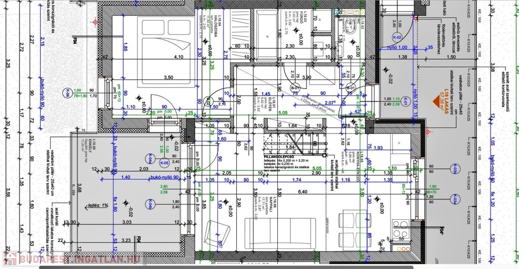 Az első emeleti, belső kétszintes 57,51 m2-es L18 LAKÁS HELYISÉGEI: