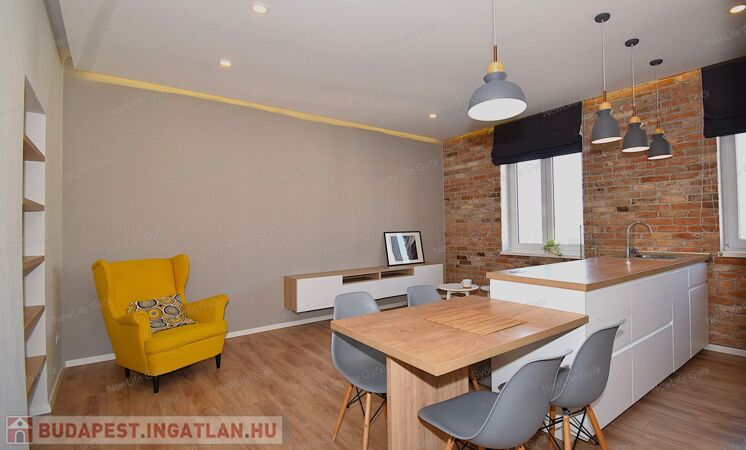 A lakás teljes bútorzatával és dizájn elemeivel együtt eladó, az ár tartalmazza.