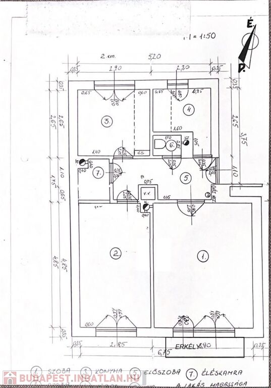 Az előszobából nyílik két külön bejáratú szoba, (a nagyobbik erkélyes), a konyha–étkező, a mosókonyha, a zuhanyzós fürdőszoba kétállású mosdóval és WC-vel, valamint egy külön WC is.