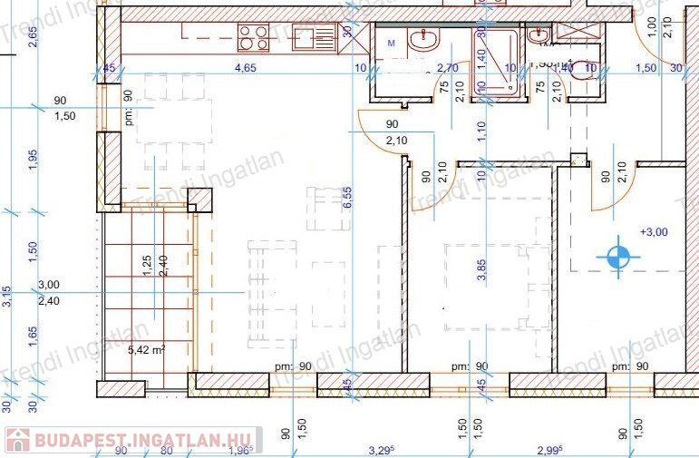 Az ingatlanban tágas, amerikai konyhás nappali, 2 szoba, fürdőszoba, WC, közlekedő található. A nappaliból 5,43 nm-es erkély nyílik.