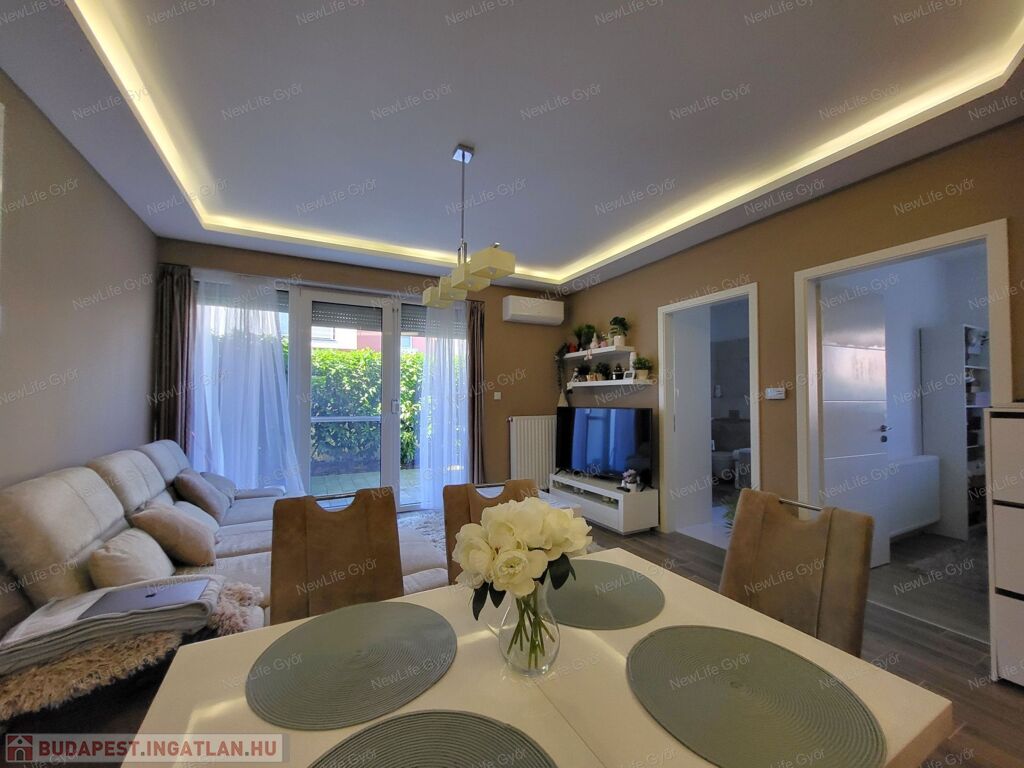 Ez nem álom – ez Győr-Ménfőcsanak egyik legcsendesebb részén található, 48 m²-es modern földszinti lakás mindezt valóra váltja.